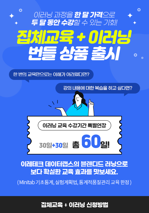 공개 교육 또는 On-site 교육에 참석,또는 온라인 통계 과정수강을 통해 Minitab을 배워봅니다.